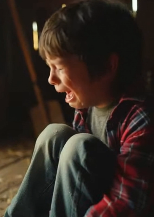 Inside, curled in the corner, was a small boy. Dust clung to his clothes. His eyes were wide, uncertain, searching.
