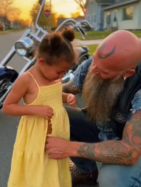 Outside a small thrift store, an American biker noticed a child standing still, feeling exposed over something small that felt enormous. He didn’t fix the dress. He fixed the moment.