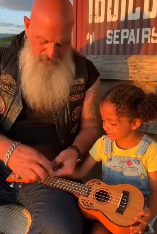 It was the kind of sound that only matters if you’re paying attention. Outside a small community center, tucked away from traffic and noise, a little girl sat on the concrete steps with a ukulele resting carefully in her lap. She couldn’t have been more than seven years old.