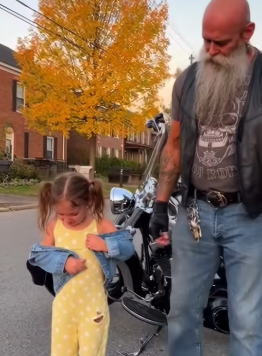 The biker didn’t try to fix the dress. He fixed something more important.