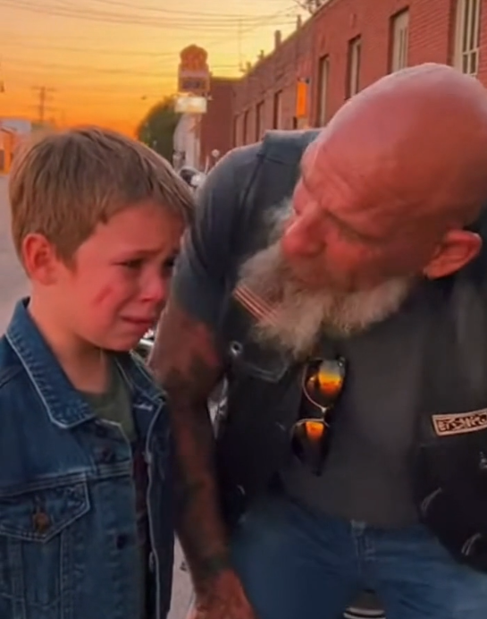 The way the boy flinched at laughter. The way his posture folded inward, like he was bracing for another hit that hadn’t come yet. The biker didn’t stare. He didn’t rush over. He waited.