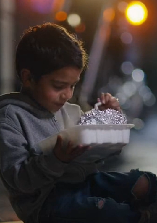 On a quiet sidewalk, in front of a closed store, a small boy slept curled against the cold concrete. No blanket. No protection. Just exhaustion pulling him into a restless kind of sleep.