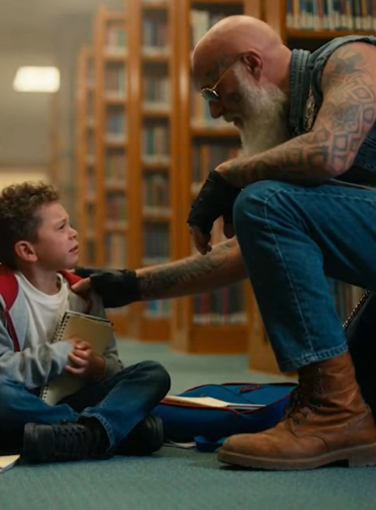 A few minutes later, the librarian came over, offering help and a quiet smile. The biker stayed. He didn’t hover, and he didn’t rush the moment. He stayed until the boy’s aunt arrived to pick him up, making sure the kid wasn’t alone again.