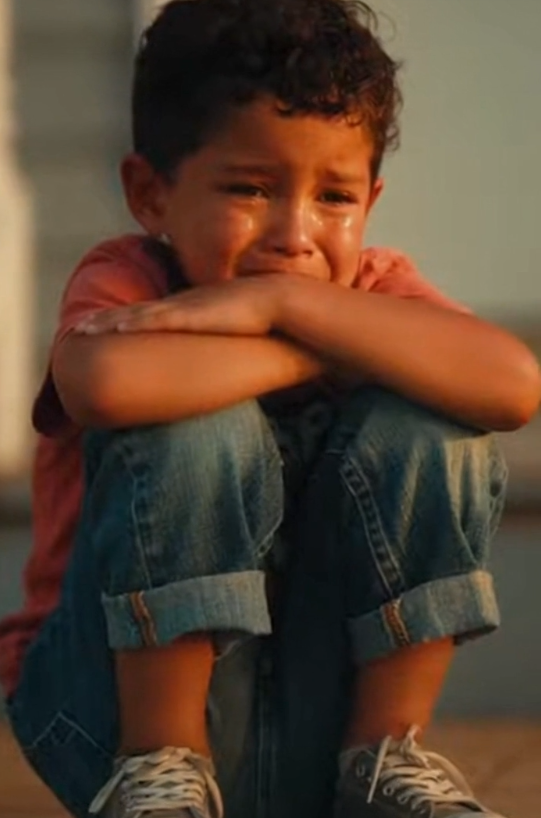 And a boy standing alone in the middle of it all.