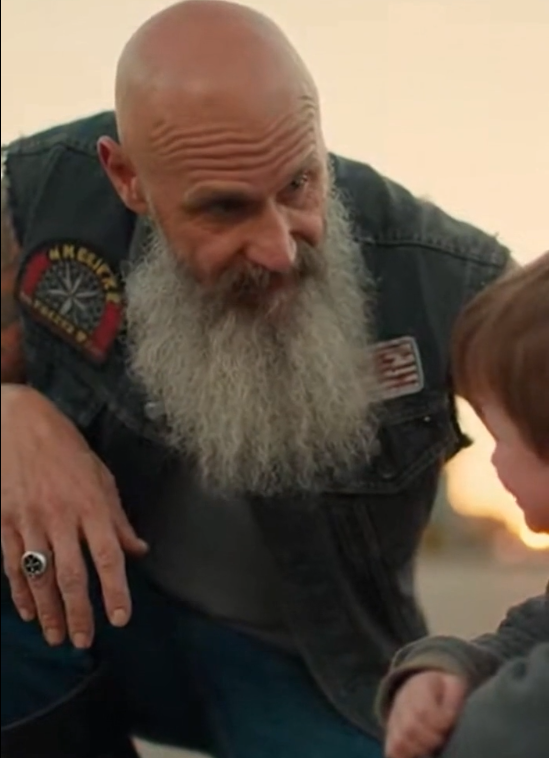 “They tell me he walks his own miles,” the biker continued. “They tell me he shows up, even when things aren’t easy.”