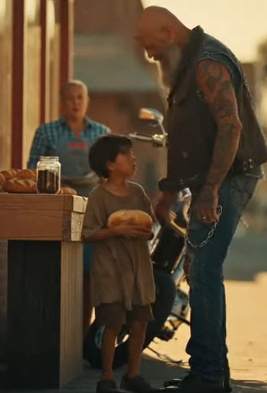 Leaning against his bike, arms crossed, he watched the whole thing unfold. Not with anger. Not with judgment.