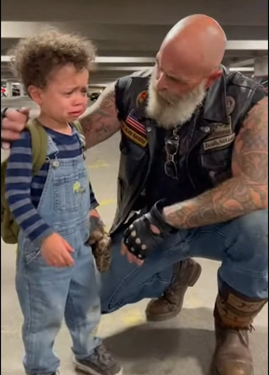 Leather vest. Helmet in hand. The kind of guy who looked like he’d seen enough of life to recognize when something wasn’t right.