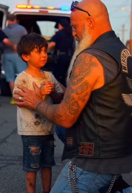 Rick didn’t argue. He didn’t escalate. He planted his boots firmly on the pavement, resting one hand lightly on the boy’s shoulder — not gripping, just reassuring.