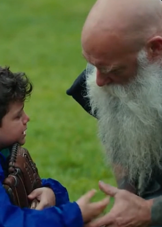 The biker turned toward the boy. His voice softened instantly, like a switch flipped inside him.