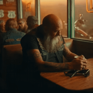“It’s alright,” the biker said, softer now. “You’re good.”