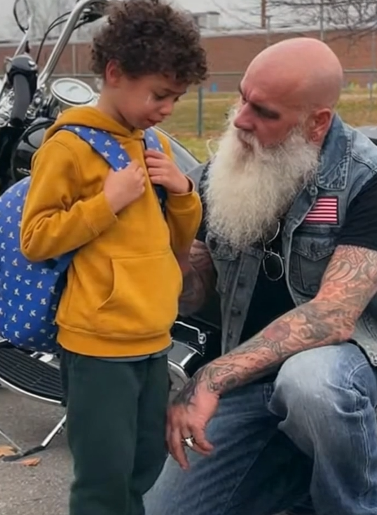The biker didn’t turn the moment into a lesson. He didn’t gather a crowd or explain why bullying is wrong. He didn’t need to.
