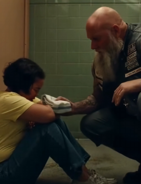 The biker leaned against the sink, keeping her voice low and steady. “You know something?” she said. “There’s nothing wrong with you.”