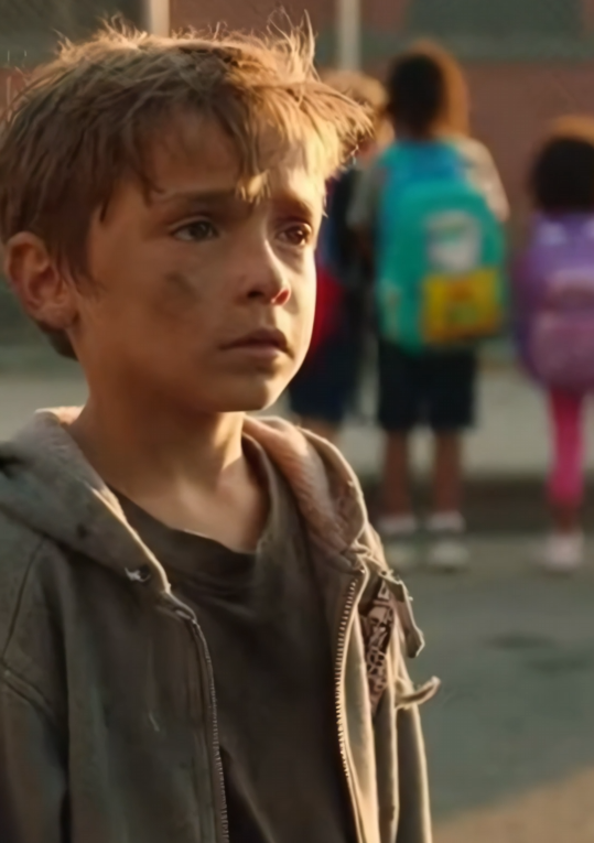 The boy was about seven years old, maybe eight at most. He stood just a little off to the side of the playground, hands pushed deep into his pockets, watching the other kids gather near the steps. They laughed easily, spinning in circles, tugging at bright straps, showing off their new backpacks like they were trophies earned instead of gifts received.