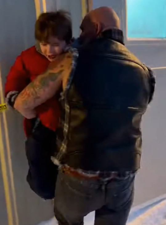 “I’ve got you,” the biker said, pressing the boy against his chest. “You’re safe now.”