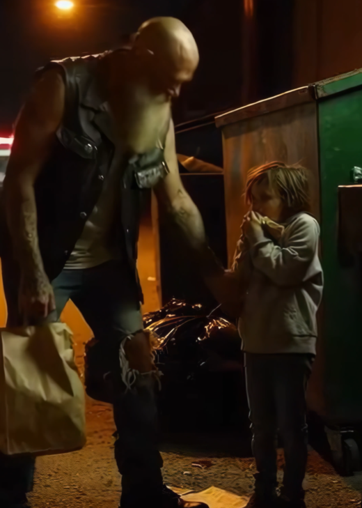 A motorcycle rolled to a stop at the mouth of the alley. The sound didn’t scare her right away. It made her freeze instead. She stayed low, holding the sandwich close to her chest, ready to run if she had to.