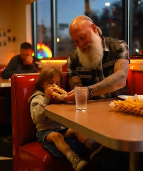 The biker rushed to a nearby store and grabbed food and water. Nothing fancy. Nothing complicated. Just what the girl needed right then. He returned quickly and helped her take small, careful bites, making sure she didn’t rush or choke.