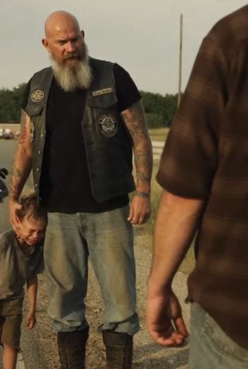 The biker didn’t rev the engine. He didn’t draw attention to himself. He took off his helmet, stepped forward, and placed himself calmly between the man and the child.