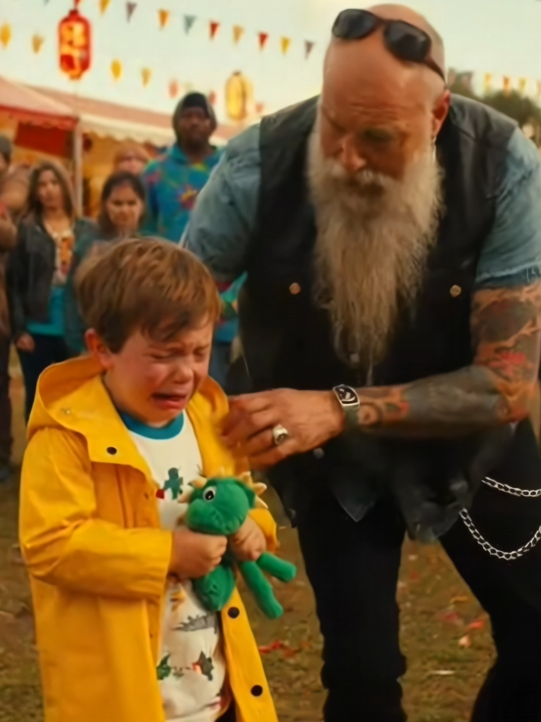 The biker walked over and crouched down to his level. “Hey, buddy,” he said calmly. “You look lost.”