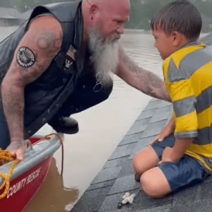 American Biker Rescues Young Boy Trapped on Rooftop During Sudden Flood