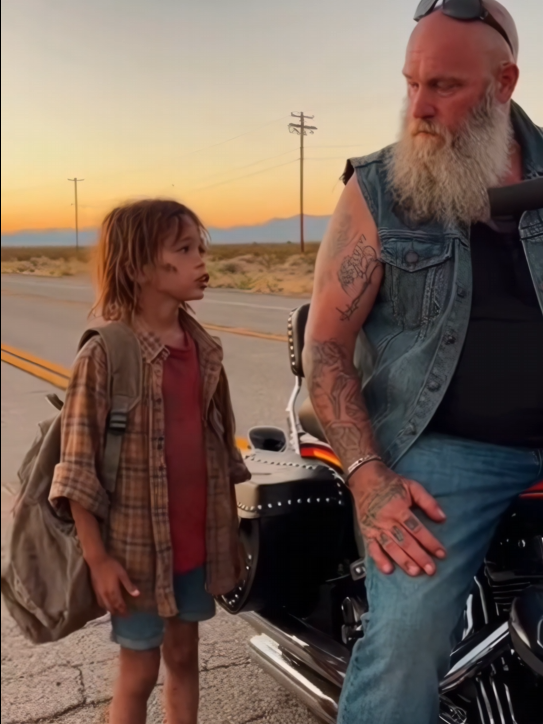 The biker crouched so they were eye to eye. He didn’t rush to fill the quiet. Years on the road had taught him that some pauses deserve respect.