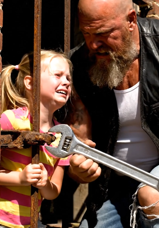 A little girl, maybe six years old, caught between the metal bars of a window. One shoulder pushed through, the rest of her body trapped. Her face was wet with tears, her breathing uneven as panic tightened around her.