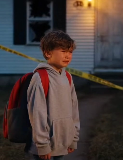 The sun was slipping behind the rooftops when the boy stopped at the corner of Maple Street. Evening had settled gently over the neighborhood. The air smelled like freshly cut grass, warm sidewalks, and barbecue smoke drifting from backyards. Porch lights flickered on one by one as families gathered inside for dinner.