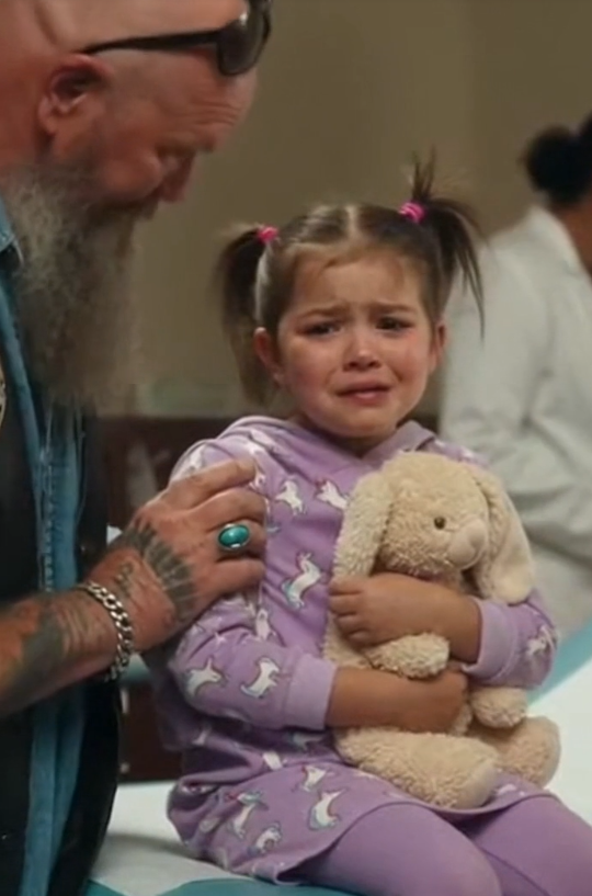 The biker didn’t rescue her from the shot. He didn’t argue with the nurse. He didn’t block the moment.