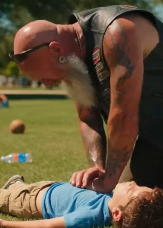 As the paramedics prepared to move him into the ambulance, Ethan reached out and grabbed the edge of Grizzly’s leather vest.