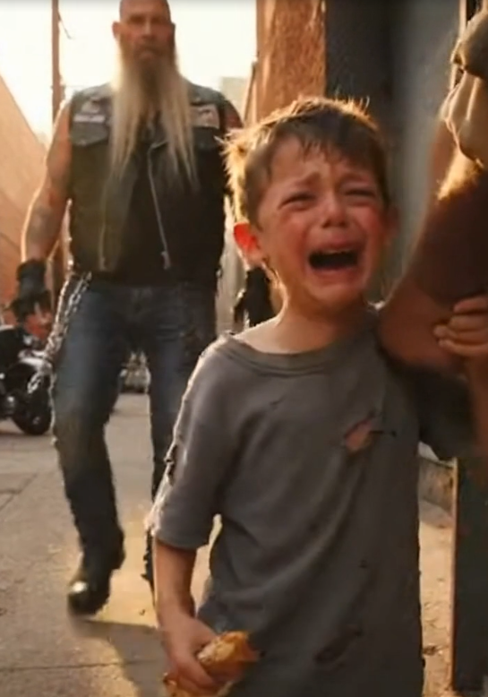 A biker had stepped forward. Leather vest worn soft by years on the road. Sun-worn boots planted firmly on the ground. Arms marked by experience rather than display.
