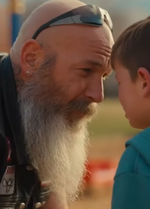 The man who stepped off the bike looked like someone who had spent many years on open highways. He had broad shoulders, a gray-streaked beard, and a weathered leather vest that carried the marks of countless miles.