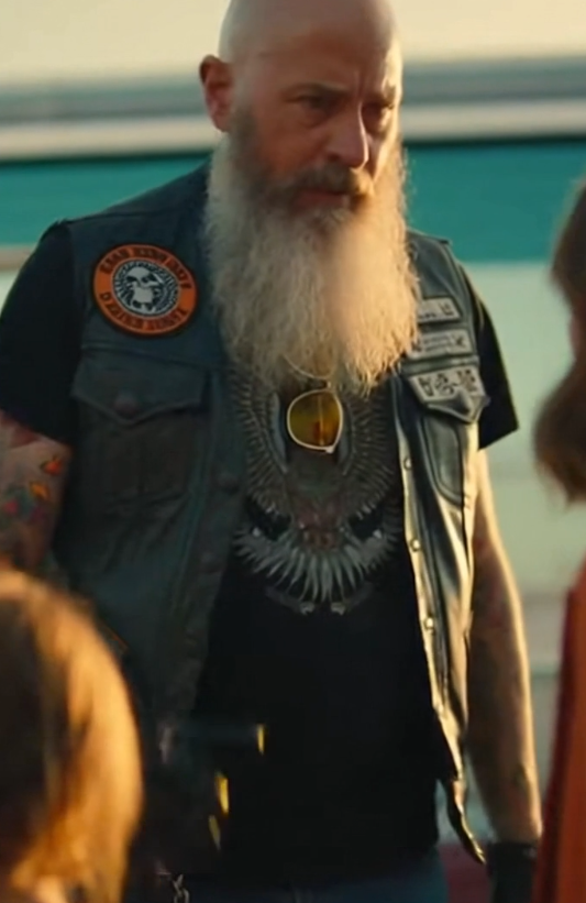 The man was tall and broad-shouldered with a thick beard streaked with gray. A leather vest rested over his shirt, and the patch on the back showed the emblem of a motorcycle club.