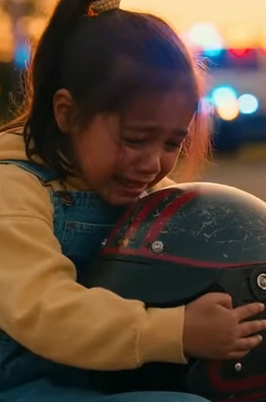 Her crying softened. Her breathing steadied. Her grip on the helmet loosened—not because she was letting go, but because she didn’t feel like she was falling anymore.
