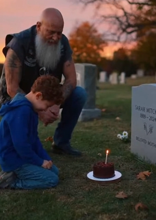 In a quiet cemetery at the edge of town, a biker and a small boy return each evening—not just to mourn, but to keep a bond alive.
