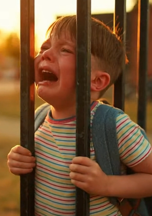 Near the edge of a yard stood a young boy—maybe seven or eight—pressed awkwardly against a tall iron fence. At first glance, it didn’t look serious.