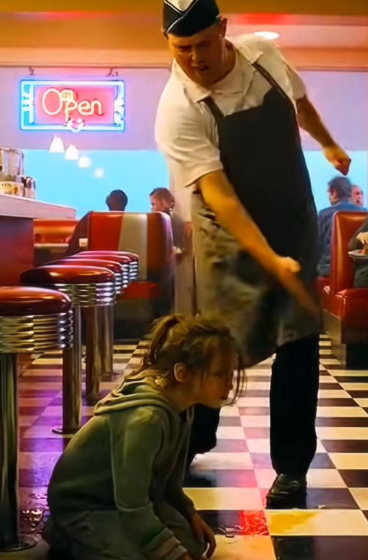 The girl stood near the counter holding a crumpled paper napkin. A milkshake had tipped over beside her, slowly spreading across the shiny diner floor like melted chocolate paint.
