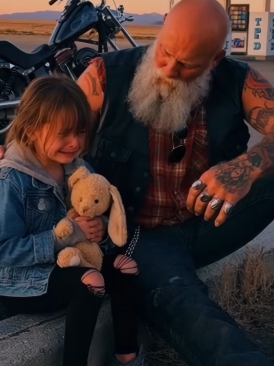 The biker didn’t ask where her parents were. He didn’t ask why she was alone. Some questions don’t need answers right away. Instead, he talked about the road—about long miles, worn tires, and how things only get beat up because they’re doing their job.
