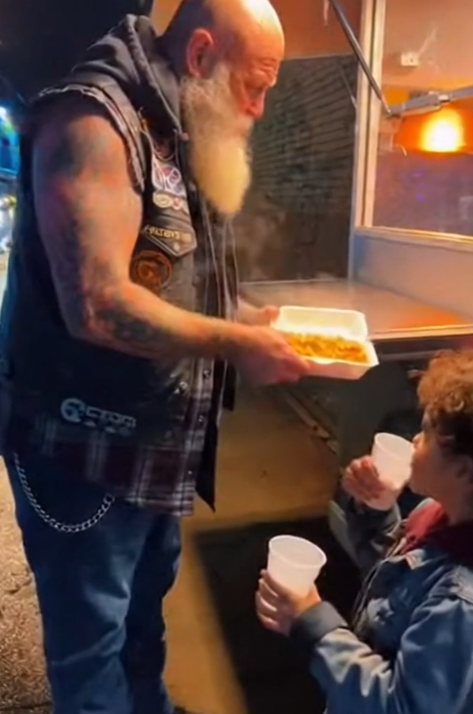 The tattooed biker never asked to be a hero. He never told his story. He just fed hungry kids because he knew what hunger felt like.
