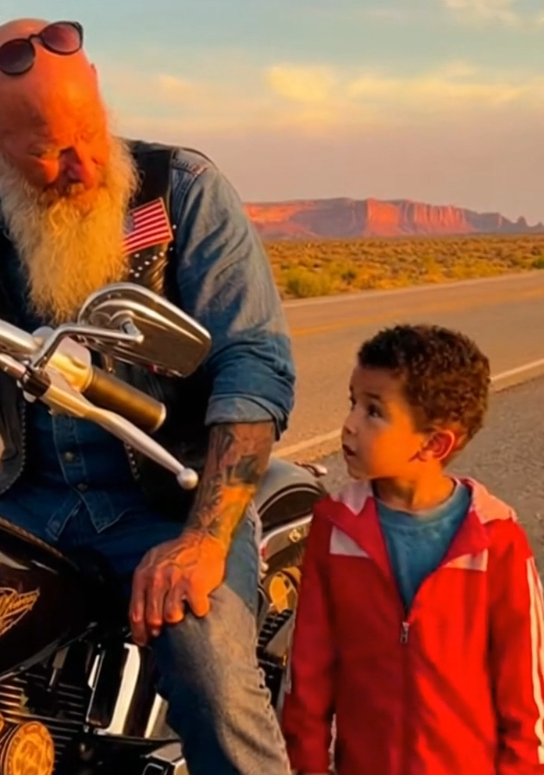 To an outsider, it might have looked ordinary. Just a biker and a kid. Just a pause before another ride.