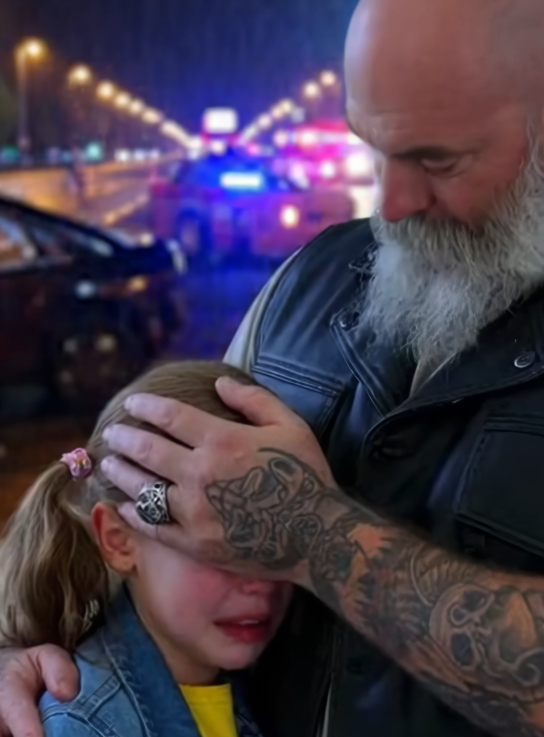 That night didn’t end with applause or recognition. It ended with a child spared from a memory she never needed and a mother who saw humanity shine through an unexpected place. In the middle of twisted metal and flashing lights, one biker reminded us of something essential: sometimes the strongest thing you can do is protect innocence—quietly, gently, and without asking for credit.