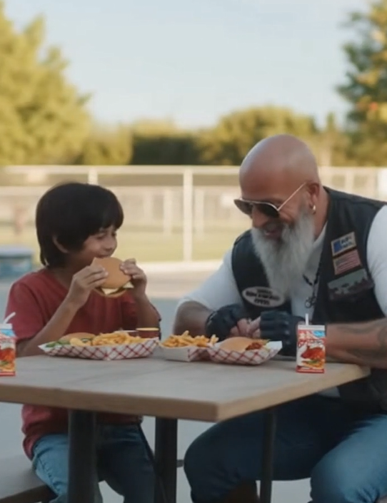 The biker leaned back in his seat, watching the boy finish his meal. He wasn’t thinking about charity or good deeds. He was thinking about a younger version of himself.