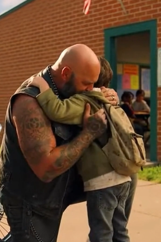 The biker didn’t leave right away. He waited outside until the bell rang. Not to supervise—but to honor the moment. Then he put on his helmet, started the engine, and rode off.