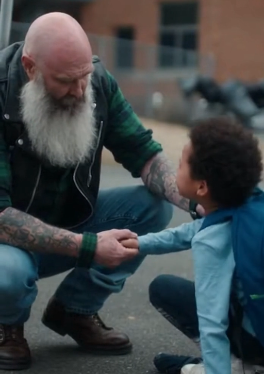 The biker didn’t linger once the truth was clear and the adults stepped in. He stayed just long enough to make sure the boy wasn’t alone and the situation was being handled. Then he stepped back. That matters too. Support doesn’t mean taking control. It means making sure the right people do.