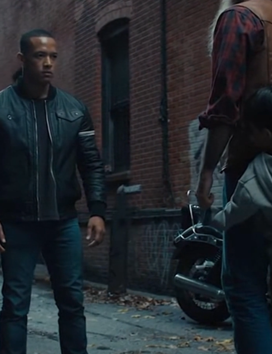 The engine went quiet, but the presence didn’t. The sound of boots hitting the ground carried a different weight—solid, unhurried, certain. A biker swung off, leather jacket creasing at the shoulders, eyes scanning the scene in a single sweep.