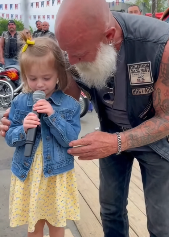 The biker didn’t clap the loudest. He didn’t smile for attention. He simply nodded once, like he knew exactly what that moment meant.