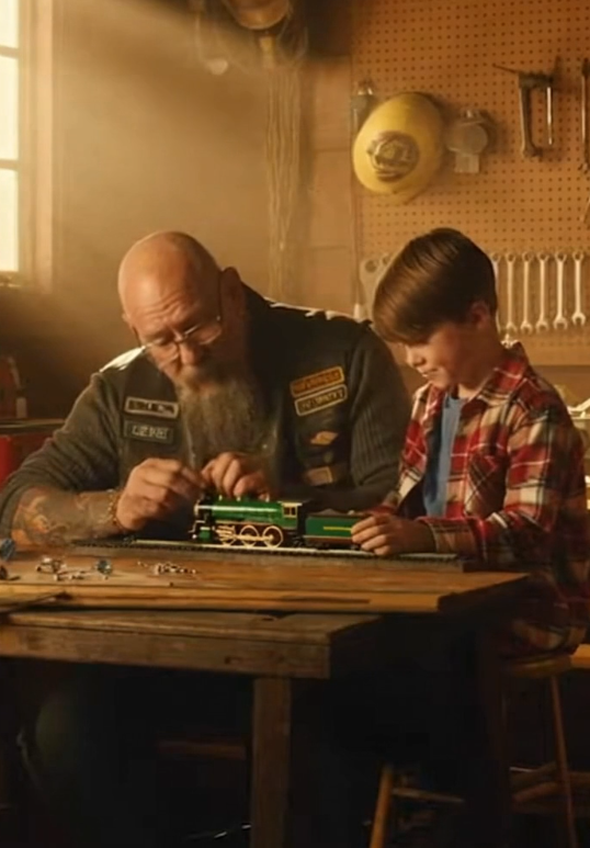 The biker asked if the boy wanted help fixing the train. Not the memory. Not the pain. Just the train. The boy hesitated, then nodded.