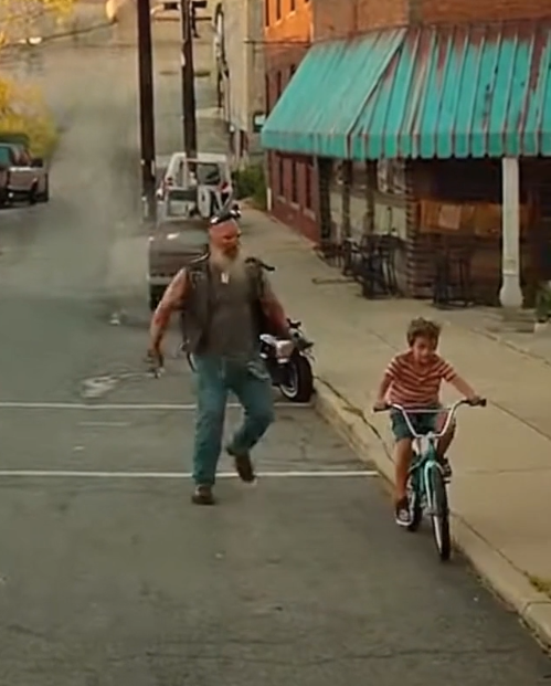 The biker reached the bike head-on. With one hand, he grabbed the handlebars. With the other, he wrapped his arm around the boy’s chest. He twisted his body sideways, taking the full weight of both the bike and the child as they tumbled together onto the grass.