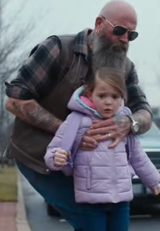 The biker kept one hand on her shoulder. Not tight. Not forceful. Just there. Solid. Reassuring.