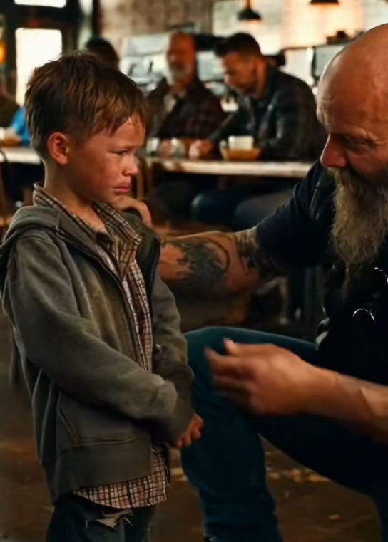 Leather jacket. Heavy boots. Road-worn posture. He hadn’t come looking for attention or conflict. But he recognized the moment for what it was.
