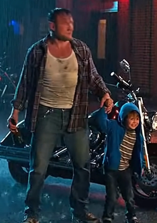 He shut off the engine and stepped toward them, posture relaxed but intentional. He didn’t rush in with anger or threats. He placed himself between the man and the boy, steady as a barrier, calm as a hand on a shoulder.