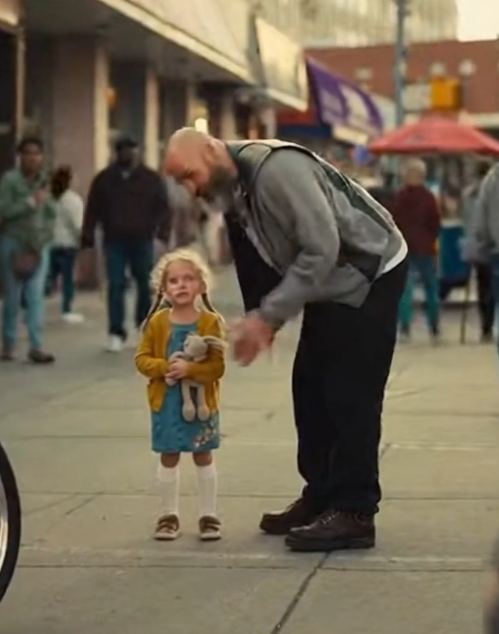 The biker stayed there a moment longer than necessary. Long enough to make sure the silence held. Long enough to make sure the child wasn’t alone anymore. He didn’t lecture. He didn’t embarrass anyone. He didn’t turn the moment into a scene.